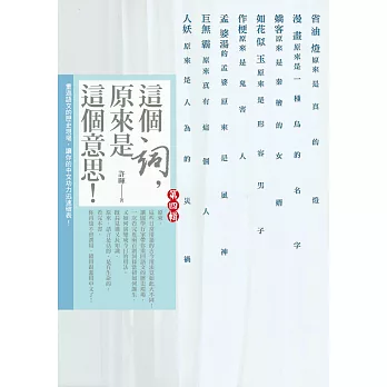讓國學行家帶你重回語文的歷史現場,一次看完近兩百則詞條當初如何誕生,又如何演變成今日的用法,既長見識又長知識。