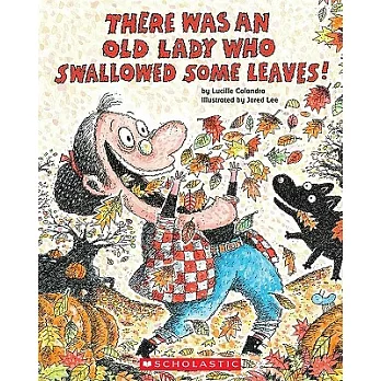 Our favorite old lady is back and swallowing autumn items That wild old lady is back swallowing fall-themed items. What can you make from leaves, clothes, a pumpkin, and rope? That's right, a scarecrow Perfect for back-to-school time.