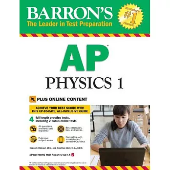 Barron's AP Physics 1 with Online Tests provides in-depth review for the Physics 1 exam, which corresponds to a first-year, algebra-based physics class. Comprehensive subject review covers dynamics, kinematics, simple circuits, simple harmonic motion, waves, and sound. This brand new book offers in-depth review for the exam and helps students apply the skills they learned in class. It includes: Two practice tests in the book that reflect the AP Physics 1 examTwo online practice tests with all questions answered and explainedA diagnostic test that helps students target areas where they need more studyPractice questions and review that cover all test areasTips and advice for dealing with the new problem types introduced on this test