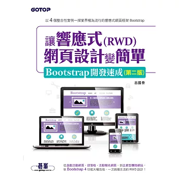 ‧完整的響應式網頁概念解說與Bootstrap 4運用方式,迅速跨入響應式設計領域。