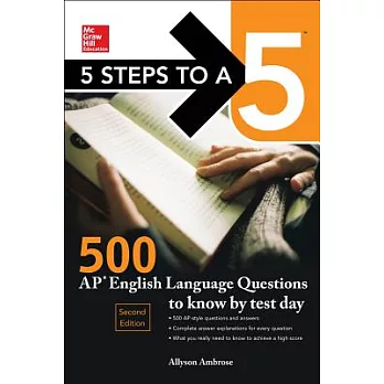 Publisher's Note: Products purchased from Third Party sellers are not guaranteed by the publisher for quality, authenticity, or access to any online entitlements included with the product.500 Ways to achieve your highest scoreWe want you to succeed on your AP* exam. That's why we've selected these passages and multiple-choice questions for you to become skilled close readers who will have success on the AP English Language and Composition exam. The questions in this book will help you put yourself in the mind of a writer who thoughtfully chooses which words to use, what sentences types, what rhetorical techniques, what structure, what tone, etc. If you work through these passages and questions, you will do well on the exam Each question includes a concise, easy-to-follow explanation in the answer key. You can use these questions to supplement your overall AP English Language preparation or run them shortly before the test. Either way, 5 Steps to a 5: 500 English Language Questions will get you closer to achieving the score you want on test day.