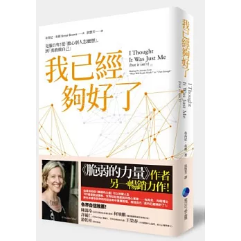 「這是一本激勵人心的重要好書,幫我們了解讓人一直以為自己不夠好的痛苦感覺。布朗博士指導我們如何鬆開這種老是覺得不夠好的拘束,擁抱真實自我。」──克勞蒂雅・布萊克博士,《這絕不會發生在我身上》的作者