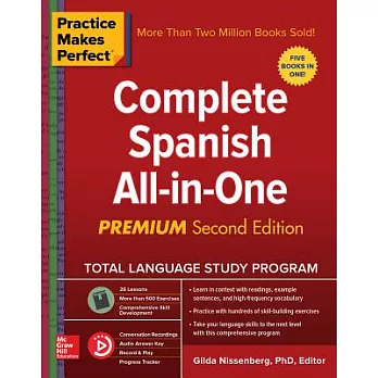 Publisher's Note: Products purchased from Third Party sellers are not guaranteed by the publisher for quality, authenticity, or access to any online entitlements included with the product.The most comprehensive way to learn Spanish - with five bestselling books in one Drawn from five workbooks from the bestselling Practice Makes Perfect series, this powerhouse volume features all the knowledge and practice you need to master Spanish. With Practice Makes Perfect: Complete Spanish All-in-One, you will build your Spanish vocabulary, straighten out your sentences, overcome your fear of verb tenses, master the intricacies of grammar, and much more. This value-packed workbook covers all the facets of Spanish and offers thorough explanations that are reinforced by hundreds of hands-on practice exercises. You will, or course, get plenty of practice, practice, practice using all your new Spanish skills. Whether you are learning on your own or taking a beginning Spanish class, Practice Makes Perfect: Complete Spanish All-in-One will help you master Spanish in no time at all. THE BONUS APP THAT ACCOMPANIES THIS BOOK PROVIDES: ● FLASHCARDS to aid memorization of all vocabulary items● STREAMING AUDIO for hundreds of exercise answers to model your pronunciation● PROGRESS TRACKER to assess your progress Practice Makes Perfect: Complete Spanish All-in-One helps you: ● Learn Spanish vocabulary● Get a solid grasp on grammar● Determine when to use different verb tenses● Master spelling and punctuate rules● Converse confidently in your new language● Build correct sentence structures