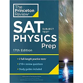 EVERYTHING YOU NEED TO HELP SCORE A PERFECT 800. Equip yourself to ace the SAT Subject Test in Physics with The Princeton Review's comprehensive study guide--including 2 full-length practice tests, thorough reviews of key physics topics, and targeted strategies for every question type.Physics can be a tough subject to get a good handle on--and scoring well on the SAT Subject Test isn't easy to do. Written by the experts at The Princeton Review, SAT Subject Test Physics Prep gives you the tools you need for the score you want. Techniques That Actually Work.- Tried-and-true tactics to help you avoid traps and beat the test- Tips for pacing yourself and guessing logically- Essential strategies to help you work smarter, not harder Everything You Need to Know to Help Achieve a High Score.- Expert subject reviews for every test topic- Detailed, detachable study guides to help organize your prep- Online score conversion tables to help you assess your performance and track your progress Practice Your Way to Excellence.- 2 full-length practice tests with detailed answer explanations- Sample review questions at the end of each content chapter, plus final drill sections to test your comprehension- Robust, easily reviewable summaries that emphasize core concepts