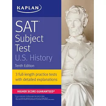 Kaplan's SAT Subject Test U.S. History is the most up-to-date guide on the market with the essential content, practice, and strategies students need for success on Test Day. Kaplan's expert tips and focused review will help you ace the test and give your college applications a boost.Kaplan is so certain that SAT Subject Test U.S. History offers all the knowledge you need to pass the exam that we guarantee it: After studying with the book, you'll score higher on your test--or you'll get your money back. Essential ReviewThree full-length practice tests with detailed answer explanationsA full-length diagnostic test identifies areas for score improvement so you can personalize your prepFocused chapter summaries, highlights, and quizzesEnd-of-chapter quizzes for additional practiceProven score-raising strategies teach you how to tackle the test efficientlyExpert GuidanceWe know the test: Our Learning Engineers have put tens of thousands of hours into studying the SAT - using real data to design the most effective strategies and study plans.Kaplan's expert psychometricians make sure our practice questions and study materials are true to the test.We invented test prep--Kaplan (www.kaptest.com) has been helping students for almost 80 years, and more than 95% of our students get into their top-choice schools. Our proven strategies have helped legions of students achieve their dreams.