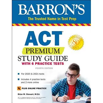 Barron's ACT Premium Study Guide with 6 Practice Tests provides online practice, customizable study plans, and expert advice from experienced teachers who know the test. Step-by-step review helps you master the content, and full-length practice tests in the book and online provide realistic test experience so you're prepared for the exam.This edition includes: Three full-length practice tests in the bookTwo full-length online practice testsOne full-length diagnostic test in the book with guidance on how to use your results to determine the subjects you need to study moreEasy, medium, and hard practice passages that enable you to customize your studyStudy plan recommendations based on the amount of time you have to prepareExtensive subject reviews that cover all parts of the ACT: English, math, reading, science, and the writing testDetailed overview of the ACT with comprehensive answers to frequently asked questionsAdvice on optimizing the test-taking mindset and managing test anxietyProven test-taking strategies for students of all ability levels