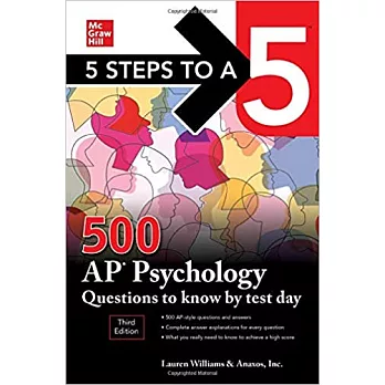 500 AP style questions with detailed answer explanations to prepare you for what you'll see on test day From Schools of Thought to Research Methods, the Brain, and Neuroscience to Mood Disorders, Therapies, and Social Psychology--there is a lot of subject matter to know if you want to succeed on your AP Psychology exam. That's why we've selected these 500 AP-style questions and answers that coverall topics found on this exam. The targeted questions will prepare you for what you'll see on test day, help you study more effectively, and use your review time wisely to achieve your best score.Each question includes a concise, easy-to-follow explanation in the answer key. You can use these questions to supplement your overall AP Psychology preparation or run them shortly before the test. Either way, 5 Steps to a 5: 500 Psychology Questions will get you closer to achieving the score you want on test day.