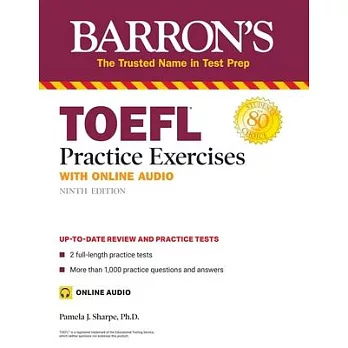 Dr. Pamela Sharpe is an internationally known expert on test preparation. She has taught ESL at the University of Florida, the Ohio State University, the University of Toledo, the University of Texas at Austin, and Northern Arizona University. She is the author of more than 12 books. Her books on the TOEFL are Barron’s best sellers and have helped millions of students prepare for and succeed on the TOEFL. About the Publisher In the 1930s, Manuel H. Barron opened a bookstore in Brooklyn, New York. People from the community asked Mr. Barron about books that might be available to help their children study for the New York State Regents exams. After realizing there wasn’t anything available, Mr. Barron created his own study guides. 80 years later, Barron’s has helped millions of people prepare for their next step.