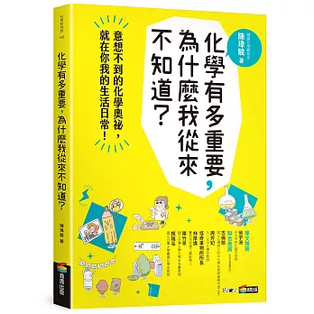 本書由生活中最常見的現象或事件為例,用輕鬆易懂的文字,搭配幽默風趣的插畫,說明現象或事件背後那些我們從未深入思考的化學原理,如原子結構、核反應、濃度、酸鹼、氧化還原、同類互溶等等。不僅掌握正確的科學知識,也讓你成為聰明而謹慎的消費者,更打破你對化學「艱深難懂」的刻板印象,重新發現科學的價值與樂趣!