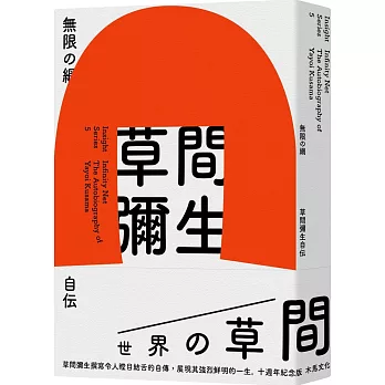 這是草間彌生第一本中文版自傳,回顧她一生傳奇的創作之路。書中從她1957年前往美國的人生開始敘述,因為她認為,儘管自己很小的時候就開始喜歡畫畫,但真正具有決定性、攸關命運的關鍵時刻,還是她下定決心離開日本,前往美國的那個瞬間。