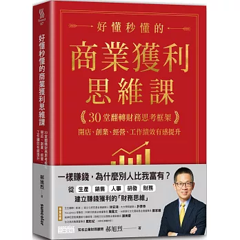 一樣賺錢,為什麼別人比我富有? 產業劇烈變動,全球面對嚴苛的生存挑戰, 每一個經營決策都跟「財務思維」息息相關, 走錯任一步,都將可能使任何的公司、商店或個人,面臨生存大危機! ★知名企業財務顧問教你破除獲利陷阱與迷思 →從生產、銷售、人事、研發、財務 等五大區塊解析商業獲利的祕訣 Q1: 只是稍微延遲一點交貨應該沒差? Q2: 小小的錯誤不會導致大損失? Q3: 訂單接越多越好? Q4: 如何讓客戶早點付款? Q5: 完成訂單,對方竟然要退貨退款 Q6: 請的人多,工作一定做得更快更好? Q7: 績效獎金都發出去了,為何業績卻不如預期? Q8: 你知道錢都花到哪去了嗎? 「所有個人都賺錢獲利,部門就賺錢獲利;所有部門都賺錢獲利,公司就賺錢獲利。 公司給付薪水,實際上就是一筆『買賣』,不管是在哪個部門,薪水一定要匹配價值,這筆買賣才會成交。這也就是為什麼每個職場上的人,都必須要學習『賺錢』和『獲利』財務思維的基本原因。」──── 郝旭烈 面對嚴苛的市場挑戰,該如何看穿局勢,擬定策略? 客人多、生意好,就一定會獲利賺錢?為了賺更多,提升庫存量是必要的?預算到底重不重要?如何聰明編制預算?研發要成功一定要花大錢? 時代變化越來越快,唯有用正確的「財務思維」數字化經營,才能避免財務危機,使公司或經營小店都能穩健地正向成長!本書將教你,如何避開中小企業最常見的財務經營問題,用財務思維做出正確的商業決策,即使遇到「黑天鵝」衝擊,也能安然度過寒冬! 本書特色 *用清楚而簡單的方法,建立財務思維,可運用於個人、工作、企業經營。 *內容將以案例呈現,搭配相關圖表清楚傳達重要觀念,避免掉入數字陷阱中。 *就算不是財務背景出身,你也能從解讀背後隱藏的意義了解企業的經營態度,對於工作、經營會有很大的助力。 *本書不僅可幫助公司主管、中小企業經營者、開店小老闆等,增進商業決策力,對於上班族亦能突破現有格局,提升財商思考力。國內推薦 林安鴻 生生國際(香港)|家文化研究基金會創辦人 許景泰 大大學院CEO 陳鳳文 VocalAsia理事長|科華文教基金會董事長 鄭家鐘 台新銀行文化藝術基金會董事長 謝美慶 前神旺控股集團執行總經理|敦煌文化弘揚基金會副會長 戴彰紀 台北旅店集團董事長 ???zh_TW.webpac.bookDescSource???:博客來網路書店