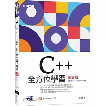 *針對大專院校教學進度編寫,適合作學習C++程式語言的教材,內容由淺入深、由簡而繁的帶領讀者學習C++的基本程式設計、結構化程式設計、物件導向程式設計、與應用程式設計。