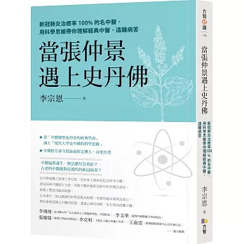 ◎二○二○年,李博士指導河南通許縣人民醫院,以「西醫檢測,中醫治療」的方針治療新冠肺炎,乃檢證經方中醫效力的明確臨床驗證。很高興他以臨床經驗深入淺出地闡述經方中醫的觀念及做法,為關心中醫的朋友們編寫了一本極佳的入門書籍。──王南雷(矽谷創業家及新創導師、臺灣創新創業中心首任執行長)