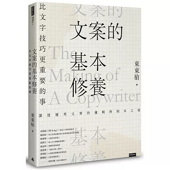 本書寫給剛從事文案、廣告創意工作的朋友,還原一套常被忽略卻無比重要的原則和細節。對於用內容去打動人,改變別人的看法和認知的文字相關工作者,這本書也有極大的幫助。