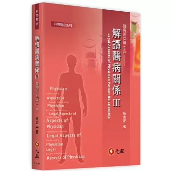 解讀醫病關係III先就醫療傷害之損害賠償要件—損害、過失與因果關係,分述於前3章,第4章則是闡述此等要件舉證責任分配之原則與例外。解讀醫病關係IV則依次於5~8章介紹醫師違反說明義務之損害賠償、醫事鑑定與審判權的關係、醫療傷害賠償請求權的消滅時效以及和解等實務上重要議題;並收錄作者發表之病安通報法制與刑事過失程度實證研究二文。
