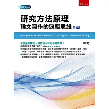 「科學」是什麼?「科學研究方法」是什麼?從問題意識、文獻回顧、研究設計、成果討論、研究倫理到說明論文寫作風格及發表。除了論文撰寫的技巧,本書更重視研究方法思維的說明。帶領讀者一步一步建立研究工作者的思考方式,寫出具有學術價值的論文。