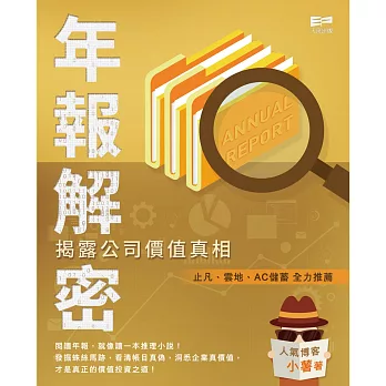 人氣財經博客小薯,憑藉專業分析公司業績及合理價,博客瀏覽量已逾100,000。身為會計行內人、並擁有多年編制年報經驗的小薯,在此首本著作將年報變為饒有趣味的推理故事,以多份年報為實例,令你準確命中年報重點,看穿財務報表核心線索的蛛絲馬跡,再比對年報其他內容,找出前後矛盾之處,助你看清帳目真假,洞悉公司的真正價值,覓得優質股!