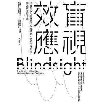 我們為什麼要買?《盲視效應》看似是揭露大腦如何驅動了我們的行為,但剝開表層,你將更加瞭解你的心理,並重新檢視自己的消費模式——你看到的將不只是廣告看板上的表面資訊,還能看穿廣告背後潛藏的其他意圖,不再被這個消費世界牽著鼻子走!