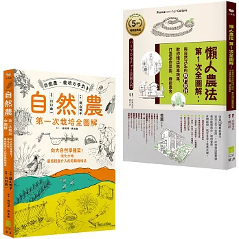 本套書組合含:《懶人農法第1次全圖解:與自然共生的樸門設計,教你種出無毒蔬果,打造迷你菜園、綠能農舍【5週年暢銷經典版】》、《自然農【第1次栽培全圖解】:向大自然學種菜!活化地力,最低程度介入的奇蹟栽培法》