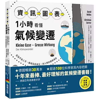 作者簡介戴維‧內勒斯、克里斯堤安‧塞爾勒David Nelles and Christian Serrer 戴維‧內勒斯(David Nelles)在德國中西部的艾菲爾莫塞地區(Eifel-Mosel-Region)長大,克里斯堤安‧塞爾勒(Christian Serrer)則來自德國西南部的黑森林,兩人因為在德國南端的波登湖畔(Bodensee)讀經濟系而相遇。有感於坊間對於氣候變遷有著莫衷一是的說詞,讓兩人萌生想要釐清自己觀點的想法。老實說,兩位作者對於鑽研厚重的專業書籍也是興趣缺缺,於是兩人希望能找到一本內容既生動又有科學依據,並且用簡要的短文從頭到尾解說氣候變遷的書。結果竟然找不到!因此讓兩人決定,乾脆自己來寫一本符合上述需求的書。 兩位作者設下目標,希望寫出來的書能讓越多人讀到越好。為了順利完成和推廣這本書,兩人創立了一家出版社。過程中,他們尋訪有熱情的美工人員、可以達到環保要求的印刷廠、各種行銷管道,以及能為本書的成書規劃提供金援的各類機構,同時與許多科學家和其他各方支持人士展開許多有趣的對話。經過一年的努力,終於看到第一批印出來的書頁。最後,兩位作者期待藉由本書,可以協助更多人了解氣候變遷的原因以及可能帶來的影響,同時也希望,這本書可以讓更多人願意為保護環境與氣候獻出一己之力。譯者簡介黃慧珍(Magda Huang)歷任國內外博覽會現場及企業會議口譯員、國際產經新聞編譯。譯有《在沙發上的經濟學》《為什麼我們最幸福?》(商周)、《祈禱,就是接收宇宙能量》(采實)等書。