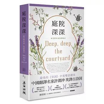 作者簡介吳俁陽(賞析)現為中國詩歌協會會員、中國散文學會會員、北京作家協會會員。著有多部詩詞賞析暢銷作品:《李煜詞傳》、《只有清香似舊時》、《相思始覺海非深》等,作品風格深受海派作家影響,以細膩婉約,情深意切為特徵。譯者簡介許淵沖(英譯)1921年生,北京大學教授,著名翻譯家。2021年逝世於北京,享嵩壽百歲。許老筆耕不輟超過一甲子,被譽為「詩譯英法唯一人」。2010年獲頒中國翻譯協會「中國翻譯文化終身成就獎」;2014年獲國際翻譯界最高獎項之一「北極光」傑出文學翻譯獎,也是首位獲此殊榮的亞洲翻譯家;同年亦獲得中國國家漢辦頒發「國際漢學翻譯大雅獎」;2015年獲選中國國家文化部「中華之光—傳播中華文化年度人物」。並曾獲中國多所大學文學院教授,聯合提名為諾貝爾文學獎候選人。譯作涵蓋中、英、法等語種,翻譯集中在中國古詩英譯,形成韻體譯詩的方法與理論,著譯包括《詩經》、《楚辭》、《西廂記》、《紅與黑》、《包法利夫人》、《追憶似水年華》等。