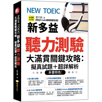 要如何在短時間內提升新制多益聽力的分數?是否有什麼訣竅呢?本書提供的是最踏實也是最省時的備考攻略,讀者只要能細細琢磨書中內容,一一身體力行,練到在聽英語的時候真的去聽關鍵要點,那麼也就算是完全掌握了訣竅,獲得聽力高分捷徑了。