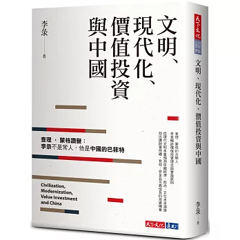 他認為,投資的核心是對未來的預測,而想要投資一國的企業,需要對那個國家有基本的認知。在這本書中,他以三十多年對現代化的深刻理解、思考、假設與論證,預測中國政治、經濟、文化的未來,並無私分享價值投資的核心概念與實踐經驗,能作為判斷投資標的與建立投資心法的重要參考。