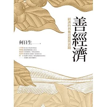《善經濟:經濟的利他思想與實踐》從利他的角度,重新審視人類歷史上各文明經濟體系中的善和利他的思想與實踐,把推動每一個經濟文明背後的善與利他思想總結出來,闡述人類文明經濟體系中的善之模式,以及善如何在推動經濟發展中產生積極的作用。作者何日生詳盡爬梳西方文明與東方思想,從蘇美文明、古希臘神話、猶太智慧、儒家哲學到佛教教義,尋找什麼才是經濟背後強大的文化思想?答案是「善」與「利他」。