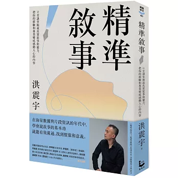 《精準敘事》是洪震宇的寫作寶典,精煉地分享了其最關鍵的敘事心法與架式。——宋世祥(「百工裡的人類學家」創辦人、中山大學人文暨科技跨領域學士學位學程助理教授)