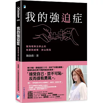 她日夜與強迫症這啃噬心靈與自我的巨獸爭戰,而那些曾經走過的孤立無援、被操弄的身不由己、夜裡的無聲崩潰,甚至驚悚懷疑強迫症取代了自己……她不希望其他強迫症患者也經歷,於是,這本掀剝與袒露腥紅傷口的書,雖是以痛銘刻,但她遞出最溫暖的雙手,在個人IG與FB粉專,以文字接住有強迫症困擾的患者、家長。