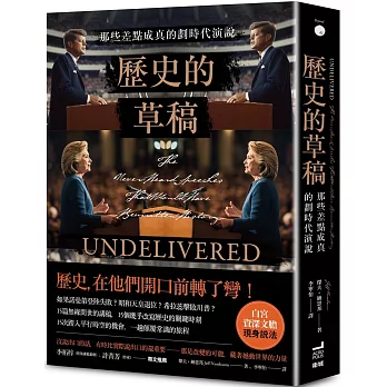 本書講述的,就是那些「沒被選擇的講稿」的故事。作者納思邦曾是美國總統拜登的演說撰稿人,長年負責民主黨高層的講稿撰寫工作,擁有資深內行人的洞見與文筆。在本書中,他不僅將因故未能發表的演說辭從歷史的紙簍桶裡搶救出來,帶我們一窺平行宇宙的可能樣貌;更運用自身專業,分析這些劃時代的演說使用了什麼技巧,做出哪些看似微小卻影響深遠的更動。《歷史的草稿》是一部充滿樂趣與啟發的作品,揭露政治活動與公開演說幕後祕辛的同時,也讓讀者看見從總統到教宗、從社運領袖到知名導演,站上講臺之前的信念與掙扎。