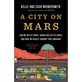 《火星城市》用幽默的筆法和插圖,深入探討了在另一個星球上建立社會所需的真實條件。(文/博客來編譯) * THE INSTANT NEW YORK TIMES BESTSELLER * Scientific American’s #1 Book for 2023 * A New York Times Book Review Editors’ Choice * A Times Best Science and Environment Book of 2023 * A Tor.com Best Book of 2023 * "Exceptional. . . Forceful, engaging and funny . . . This book will make you happy to live on this planet -- a good thing, because you’re not leaving anytime soon." --New York Times Book ReviewFrom the bestselling authors of Soonish, a brilliant and hilarious off-world investigation into space settlementEarth is not well. The promise of starting life anew somewhere far, far away--no climate change, no war, no Twitter--beckons, and settling the stars finally seems within our grasp. Or is it? Critically acclaimed, bestselling authors Kelly and Zach Weinersmith set out to write the essential guide to a glorious future of space settlements, but after years of research, they aren’t so sure it’s a good idea. Space technologies and space business are progressing fast, but we lack the knowledge needed to have space kids, build space farms, and create space nations in a way that doesn’t spark conflict back home. In a world hurtling toward human expansion into space, A City on Mars investigates whether the dream of new worlds won’t create nightmares, both for settlers and the people they leave behind. In the process, the Weinersmiths answer every question about space you’ve ever wondered about, and many you’ve never considered: Can you make babies in space? Should corporations govern space settlements? What about space war? Are we headed for a housing crisis on the Moon’s Peaks of Eternal Light--and what happens if you’re left in the Craters of Eternal Darkness? Why do astronauts love taco sauce? Speaking of meals, what’s the legal status of space cannibalism? With deep expertise, a winning sense of humor, and art from the beloved creator of Saturday Morning Breakfast Cereal, the Weinersmiths investigate perhaps the biggest questions humanity will ever ask itself--whether and how to become multiplanetary. Get in, we’re going to Mars.