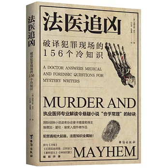 是醫學知識,還是純屬巧合?懸疑推理劇本中的犯罪情節有沒有科學依據?作者從上千封讀者來信中篩選出156個富有挑戰和趣味的問題,並做出專業性解答,包括疾病、醫療、毒藥、犯罪現場、屍檢等五大類,既能幫助相關專業讀者擴大腦洞、核查事實,又能讓普通讀者增進法醫學知識。書中除了分析案例外,作者還將自己與知名影視編輯一同工作的經驗納入其中,讓不具備法醫學背景的讀者也能快速融入劇情中。 ???zh_TW.webpac.bookDescSource???:博客來網路書店
