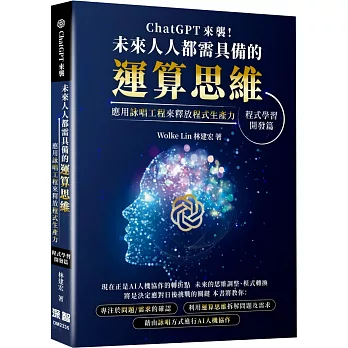 未來人人都必須具備有「運算思維」,才能駕馭AI,而不是反過來被會用AI的人淘汰,但「運算思維」該如何獲得呢?運算思維其實就是一種思考方式,可以藉由學習程式設計、解決問題、模擬現實情境來練習和培養。在掌握運算思維後,本書進一步介紹了當前熱門的ChatGPT詠唱工程,教你如何用正確的提示命令,來達到人機協作的高效率,並運用其便利性,來輔助程式學習的內容,從基礎的語法練習開始,到函式方法與物件、決策與迴圈、非同步語法與 API 呼叫、web 應用程式,最後還有實際的專案實作演練,讓你善用AI,不再擔心被淘汰!