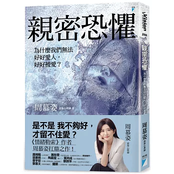 慕姿心理師以心疼的口吻述說:「我寫下《親密恐懼》,想要試著爬梳,那些人生的坎,如何影響我們的親密關係,成為關係中的另一個坎。」她期盼讀者們能藉由本書,開啟親密關係裡不同於以往的嶄新選擇,而不是一再重蹈覆轍、一再悔恨心傷,讓我們都能在親密關係裡擁有愛與歸屬,也能好好愛人,好好被愛。