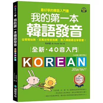 《全新!我的第一本韓語發音》【QR碼行動學習版】跟一般的發音教材不一樣,在子音、母音教學上有作者的個人特色。一般的發音教材多半是教完母音才教子音,或者是先教子音再教母音。但吳承恩老師對於課程設計非常用心,結合她多年來第一線的教學經驗,設計出一套可以同時訓練聽、說、讀、寫的韓語發音教材。本書在學習者初次接觸韓文字母的時候,就先讓大家用邊聽邊複誦的方式學習各種單字,跳脫刻板無趣的學習方法。書中多樣化的練習題,讓你學起來輕鬆有趣,在遊戲中不知不覺把韓語四十音學起來。
