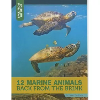 12 Marine Animals Back from the Brink Introduces 12 marine animals that were on the brink of extinction and made an amazing comeback. Facts about habitat and diet are included, along with the reasons why the species were threatened and the science behind the work that helped them survive.